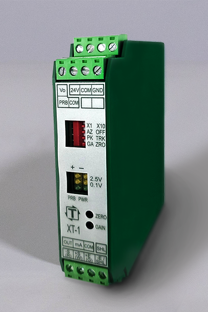 The XT-1 tonnage load module is designed for critical force measurement applications where accuracy, extreme stability, and dependable noise rejection is essential. It is equipped with an LED voltage indicator for easy setup and diagnostic. The XT-1 is DIN rail mountable and is designed to interface with PLC analog cards and human machine interfaces (HMI).